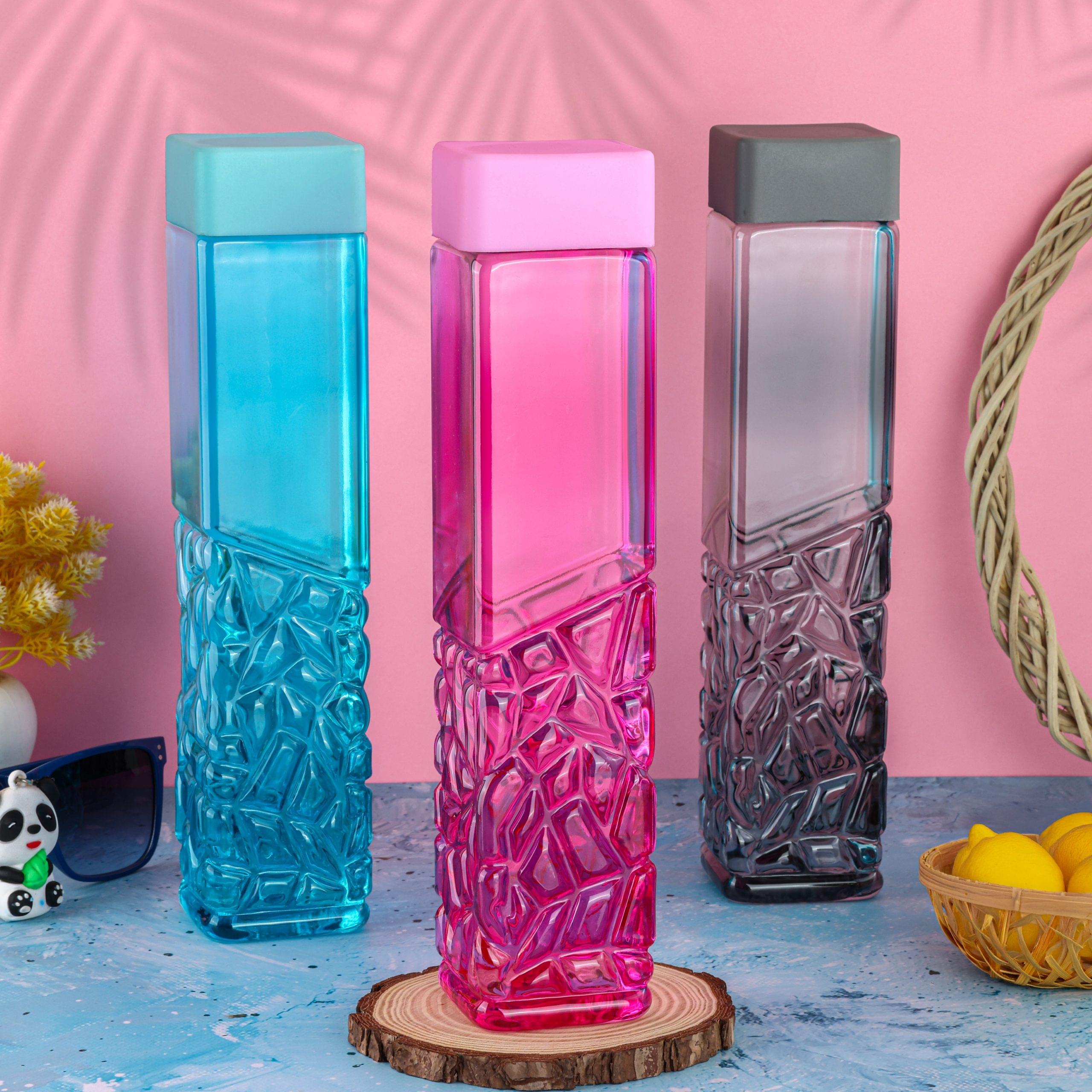 Stone Crystal Fridge Bottles – Pack of 3 – 800ml Each – Pink, Grey & Blue Caps (2Mech)
